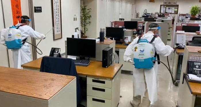 ▼新北市樹林分局同樣因為有員警確診全面大消毒。(圖/東森新聞)