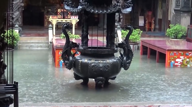 受到滯留鋒面影響,30號大雷雨狂炸中台灣,其中彰化淹水情況最慘,雨水灌進鹿港天后宮正殿,鎮上復興路和民權路,兩旁民宅全淹並發生不少交通事故,不過這波強降雨,雨卻沒降在水庫集水區,供應大台中用水的鯉魚潭水庫、德基水庫進帳有限,水情依舊吃緊,不過氣象局表示周末還有另一波鋒面報到,輕颱彩雲也可能快成形,民眾也期盼這場久違大雨,希望紓解全台旱象。