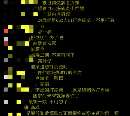 原PO好奇發問「那24歲,學生,身體健康,是哪一類啊?」依照十一類順位看下來沒有一類符合,代表必須等這十一類都打完才會輪到原PO。對此,網友紛紛留言表示「白老鼠類,國家隊感謝你」、「高端聯亞類」、「全民公測類」、「國家疫苗測試隊」、「包含高端也才3000萬劑,連高端都打不到」、「恭喜直接列入高端玩家唷」、「人死光了差不多就輪到你打了」。