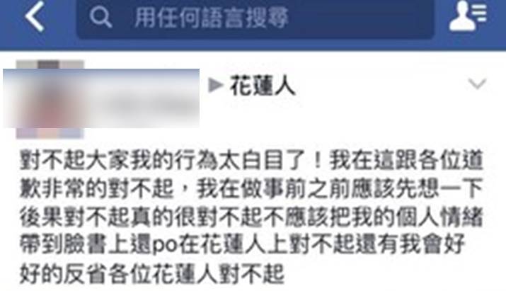 該名媽媽事後也PO文道歉滅火,「對不起大家,我的行為太白目了!我在這跟各位道歉非常對不起,我在做事之前應該先想一下後果,對不起,我不應該把我的個人情緒帶到臉書上,我會好好反省!」