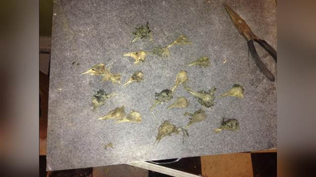 鳥頭,保守估計至少有18顆,不禁讓人寒毛直豎,畫面看起來詭異又噁心。