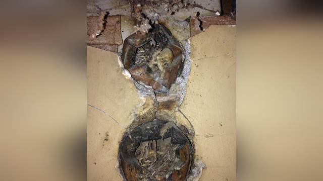 櫥櫃換掉,所以請了裝修工人前來拆除。過程中,櫥櫃拆下拍照後沒有發現任何異樣,但是直到工人鑿開