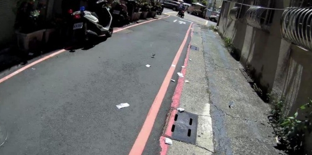 ▼員警在巡邏時,意外發現一條巷弄中有一堆紙張在飛。(圖/翻攝畫面)