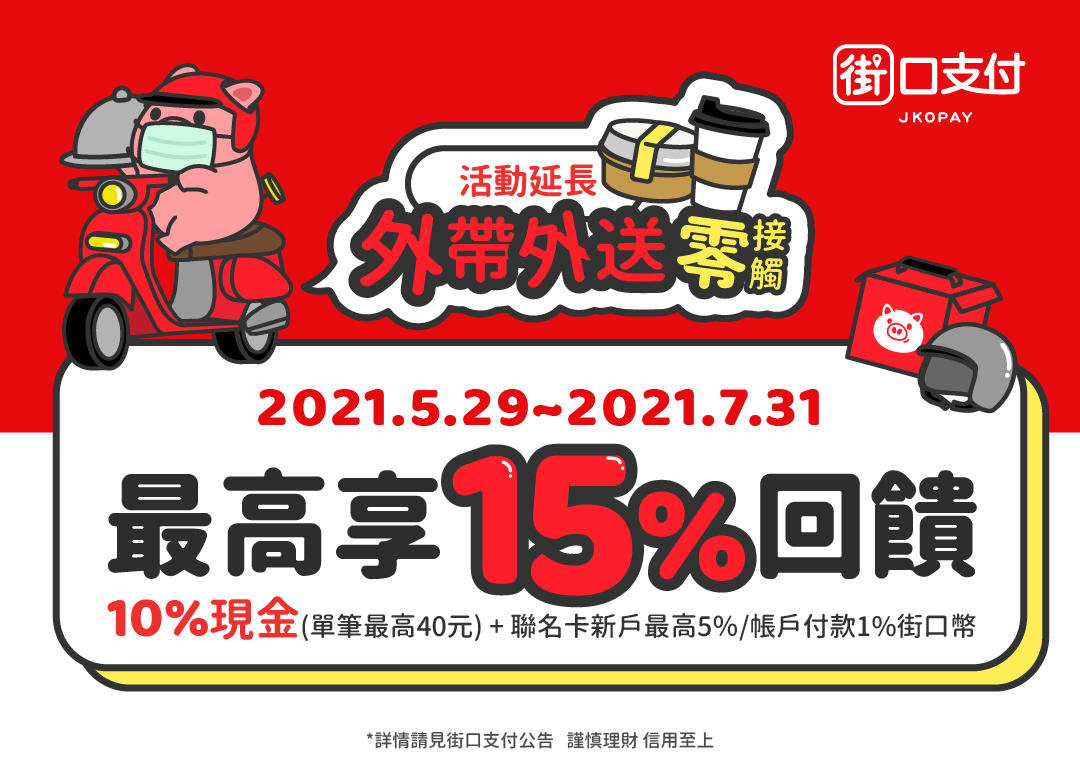 街口支付挺居家防疫新生活 外帶外送最高15%回饋 食品生鮮線上購最高13%回饋