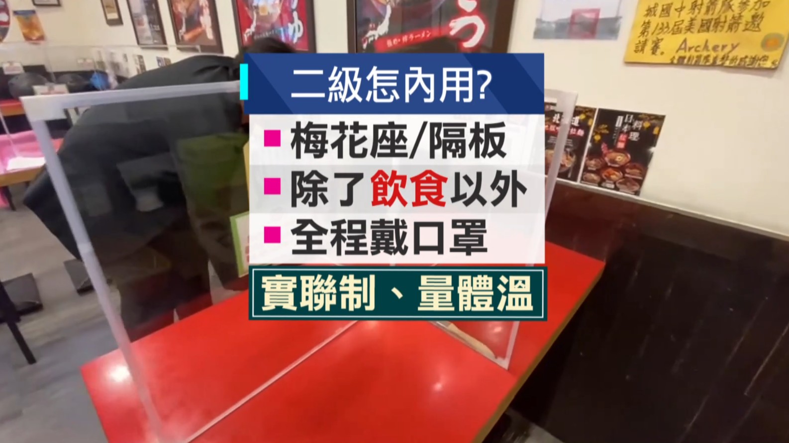 不過像這樣可以真正拿下口罩開放內用,未來降二級以後,有機會再次重現,因為政院拍板27號以後,從三級適度開放要降到二級,代表餐廳也能有條件開放接客,必須梅花座加上隔板,而且除了飲食以外,要全程戴上口罩;最重要的是,還必須落實實聯制,進出也要量體溫。至於餐廳或用餐區也要保持社交距離,室內1.5公尺、室外1公尺,人數限制室內50人,室外則是100人。