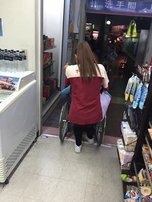 這個美麗的小七背影,這兩天在網路上瘋狂流竄!這是位在嘉義火車站的旁的小七便利商店,原PO當天發現有一位身障人士坐著輪椅,想要進到店裡買東西,但是因為店門入口有高低差進不去,這位小七店員二話不說,馬上上前協助。一旁看在眼裡的店內顧客,趕緊拍下這窩心的背影。