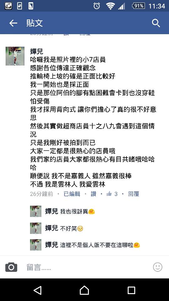 這張照片上傳網路後,被瘋狂轉載,網友紛紛大讚「美麗小七店員」、「暖心的美少女,給你拍拍手,你太有愛了,讚讚讚」...。當中有一篇留言回覆,附上一張截圖,竟然是「小七店原本尊」!截圖中寫道: