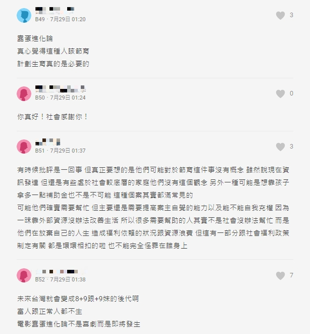 貼文曝光,不少網友也備感不捨,「小孩真可憐…」、「這種父母一堆,可憐的都是小孩」、「沒錢沒責任感真的不要生」、「窮人思想就是生一堆,養兒防老」,不僅如此,也有人點出社會當前的問題,不少中產階級、高知識分子不太生小孩,反而是這些身處弱勢的家庭,可能是迫於無奈抑或是被傳統觀念捆綁,卻造成一連串的階級複製。