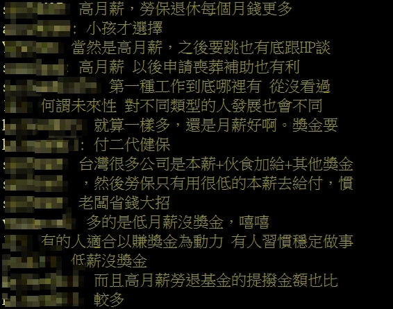 每個人對於工作的選擇不同,有些人喜歡固定領高薪,有些人則是以領獎金當作動力,一名網友好奇的在PTT發文詢問,究竟「高月薪低獎金vs低月薪高獎金」哪個好?此貼文一出,引起眾人議論,沒想到網友竟然一面倒選其中一項。