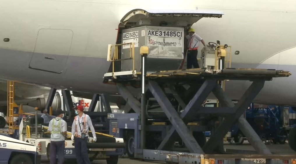 ▼華航貨機載著疫苗8月15號下午4點10分降落桃園機場。(圖/東森新聞)