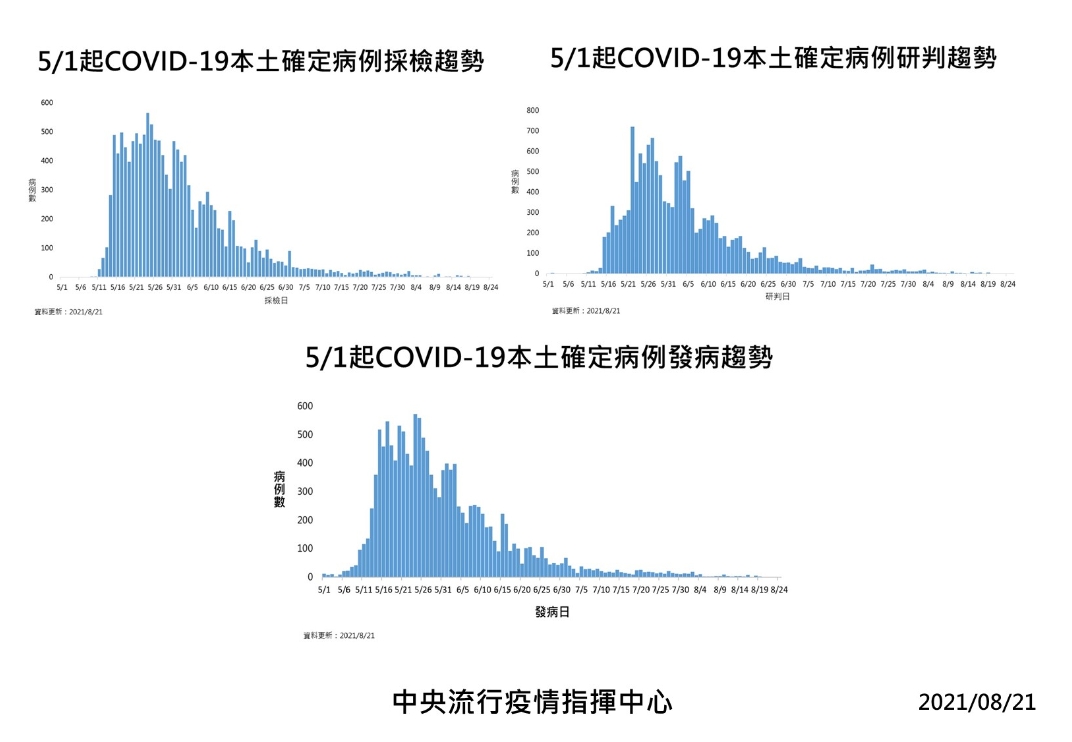 指揮中心指出,近期確診個案解隔離情形,5月11日至8月19日累計公布14,698位確診個案中,已有13,581人解除隔離,解隔離人數達確診人數92.4%。