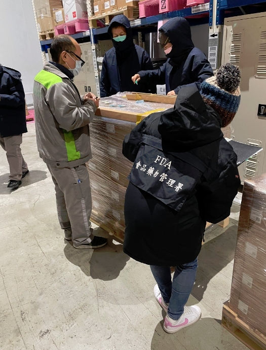食藥署表示,26.5萬劑AZ疫苗運抵後,立即派員到低溫倉儲現場監督拆箱、核對疫苗批號、清點數量、查核運送冷鏈,並抽取600劑樣品後現地封存。