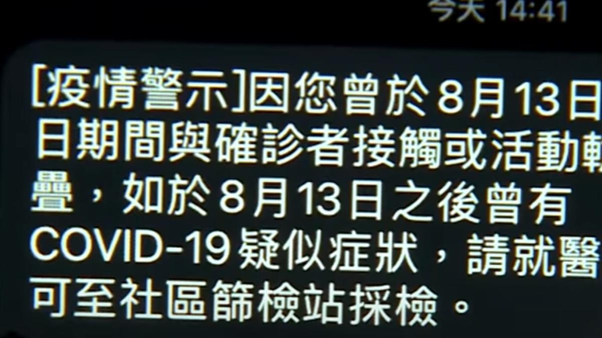 ,8月13到9月2日期間和確診者接觸或曾出入同地點民眾,只是不少人收得莫名其妙,衛福部粉專更被灌爆,沒去過為什麼也收到簡訊。
