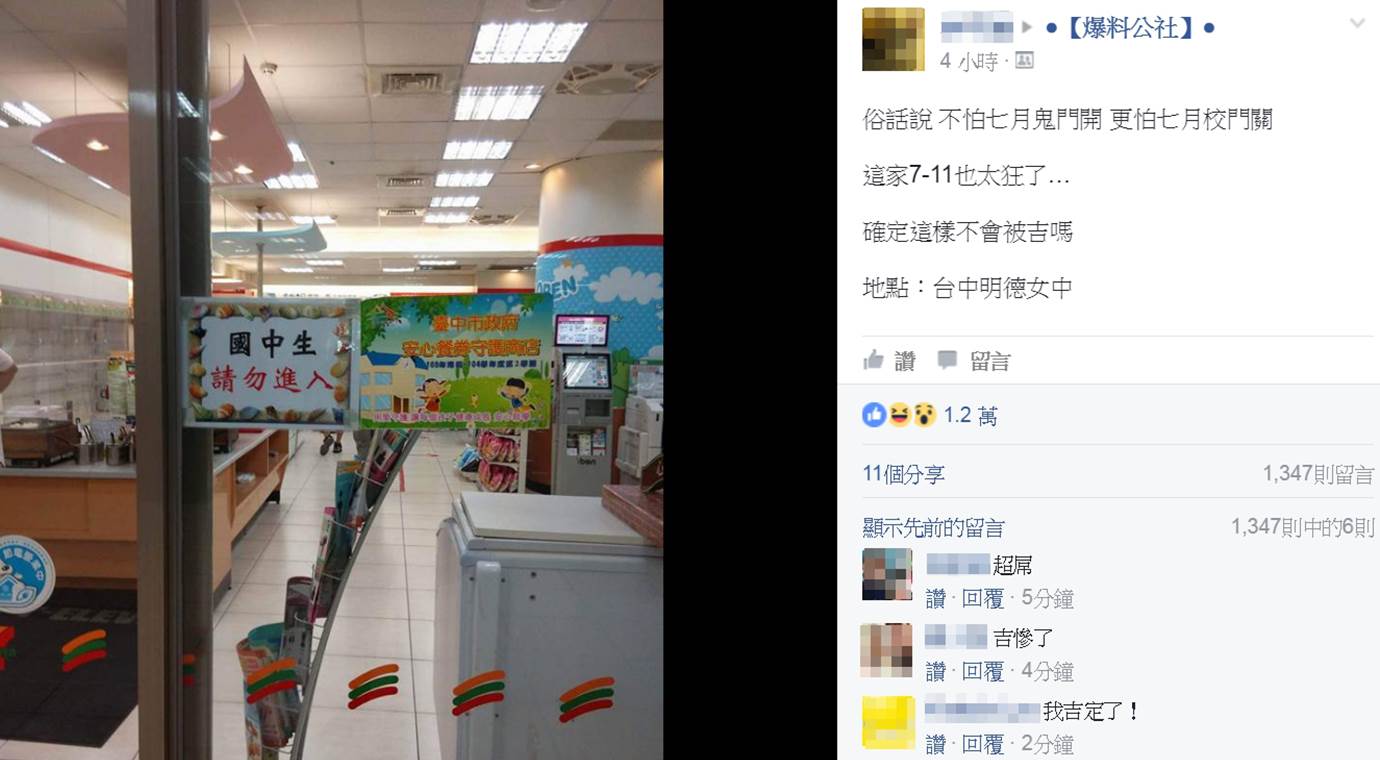一開始還有網友擔心店長「要被公司關切了」,也有人表示「這店長,我欣賞」,其實從明德女中畢業的人都知道,這其實是學校的規定,不少知情的網友浮出水面和大家分享「這是我們學校裡的7-11…因為是國高中都有的學校,所以才會禁止國中生進入」,有網友問國中生想買東西該怎麼辦?其實「學生餐廳」就設在旁邊。因為現行「學校餐廳廚房員生消費合作社衛生管理辦法」第十三條第三項公告飲品及點心範圍中規定,為維護中小學健康,校園內禁售高糖、高鹽、高脂肪、高熱量等餅乾、飲料。