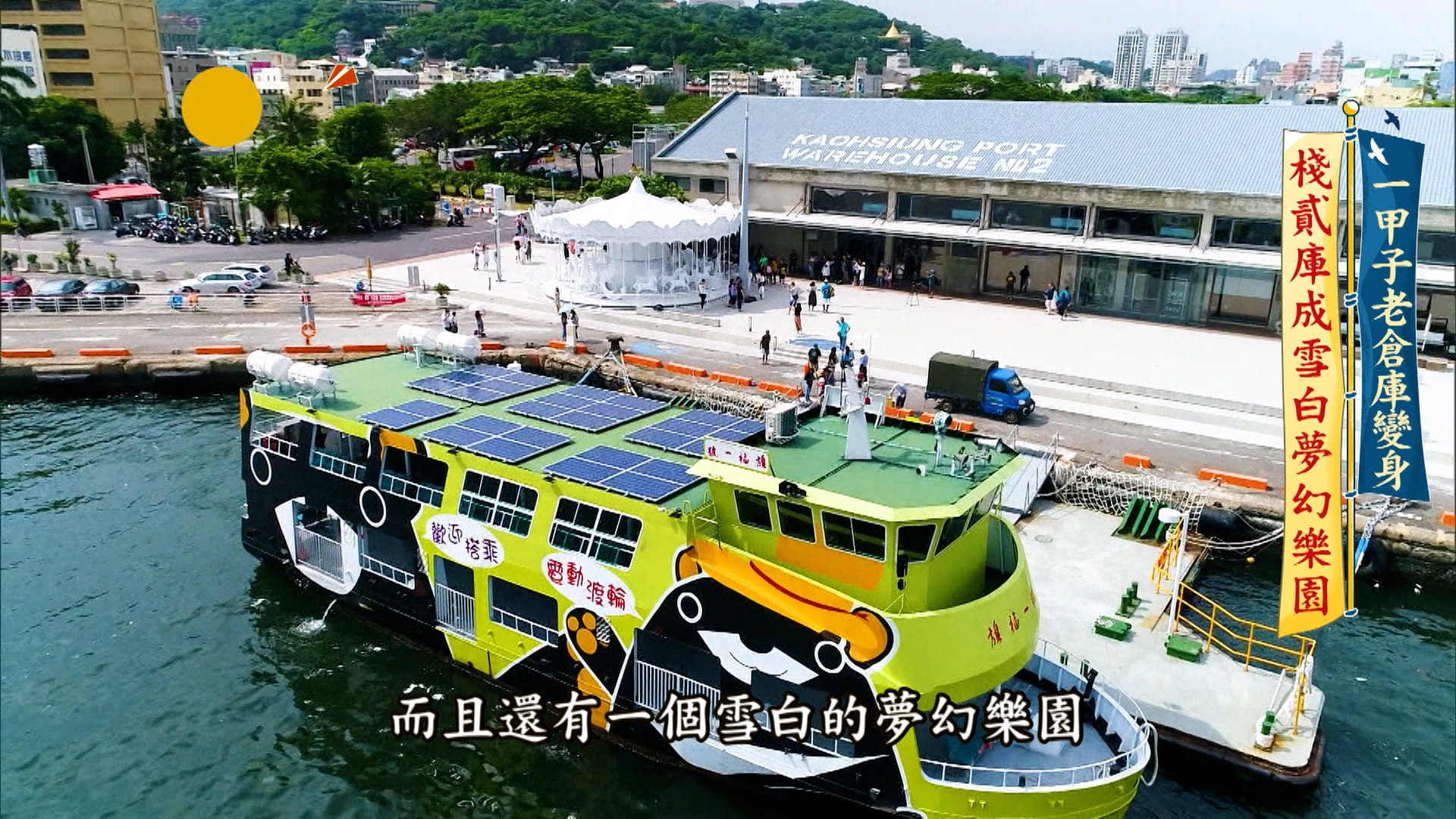 「來到高雄你一定會想到駁二,但你知道現在在駁二旁邊,有一個很厲害的地方嗎?」主持人的第一站,來到棧貳庫,並邀請棧貳庫的行銷謝孟翰同遊。謝孟翰提到,整個棧二庫,其實是高雄港112年以來的發展起源地,擁有一甲子歷史的老倉庫,現在搖身一變,變成好吃好玩的文創世集。戶外設置純白旋轉木馬、摩天輪,林蔭下還有必不可少的網美大道,不僅適合親子同樂,也是年輕人約會休閒的好去處。