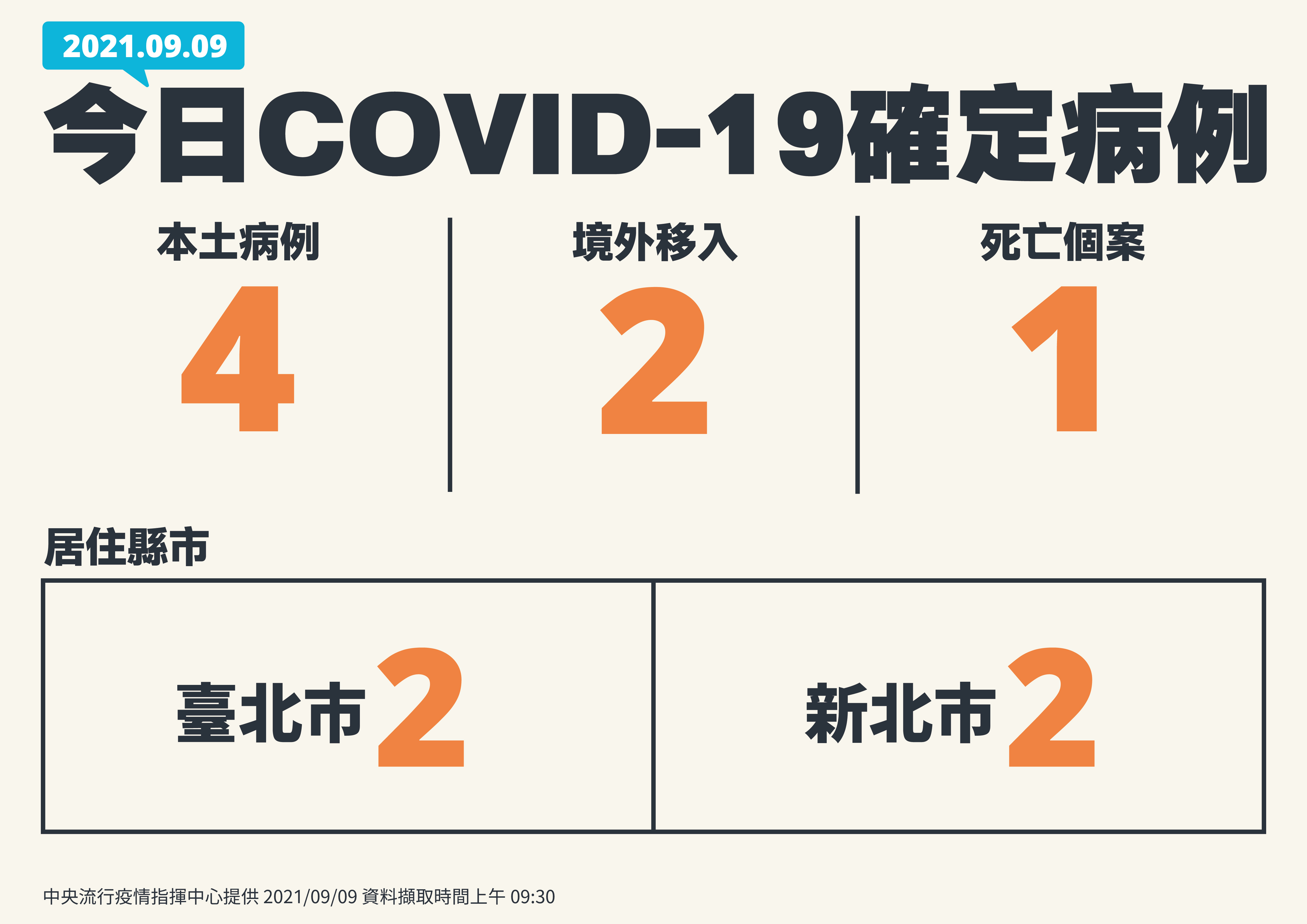 ▼國內今(9)日新增4例本土2例境外移入。(圖/指揮中心提供)
