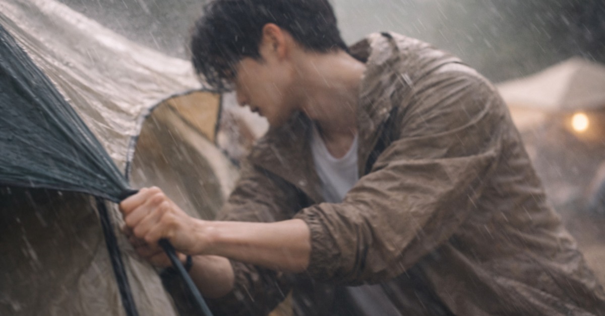 ▼雨傘在四級風的情況下已支撐不住。(圖/東森新聞)