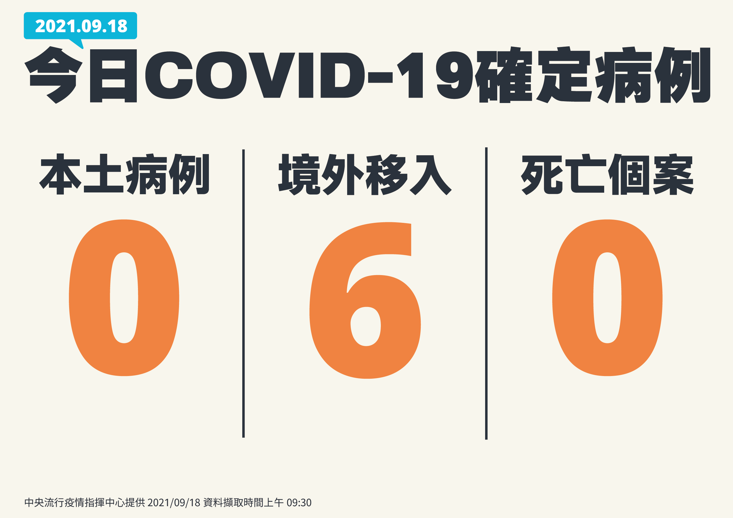 中央流行疫情指揮中心今(18)日公布國內新增6例COVID-19確定病例,均為境外移入;另確診個案中無新增死亡。