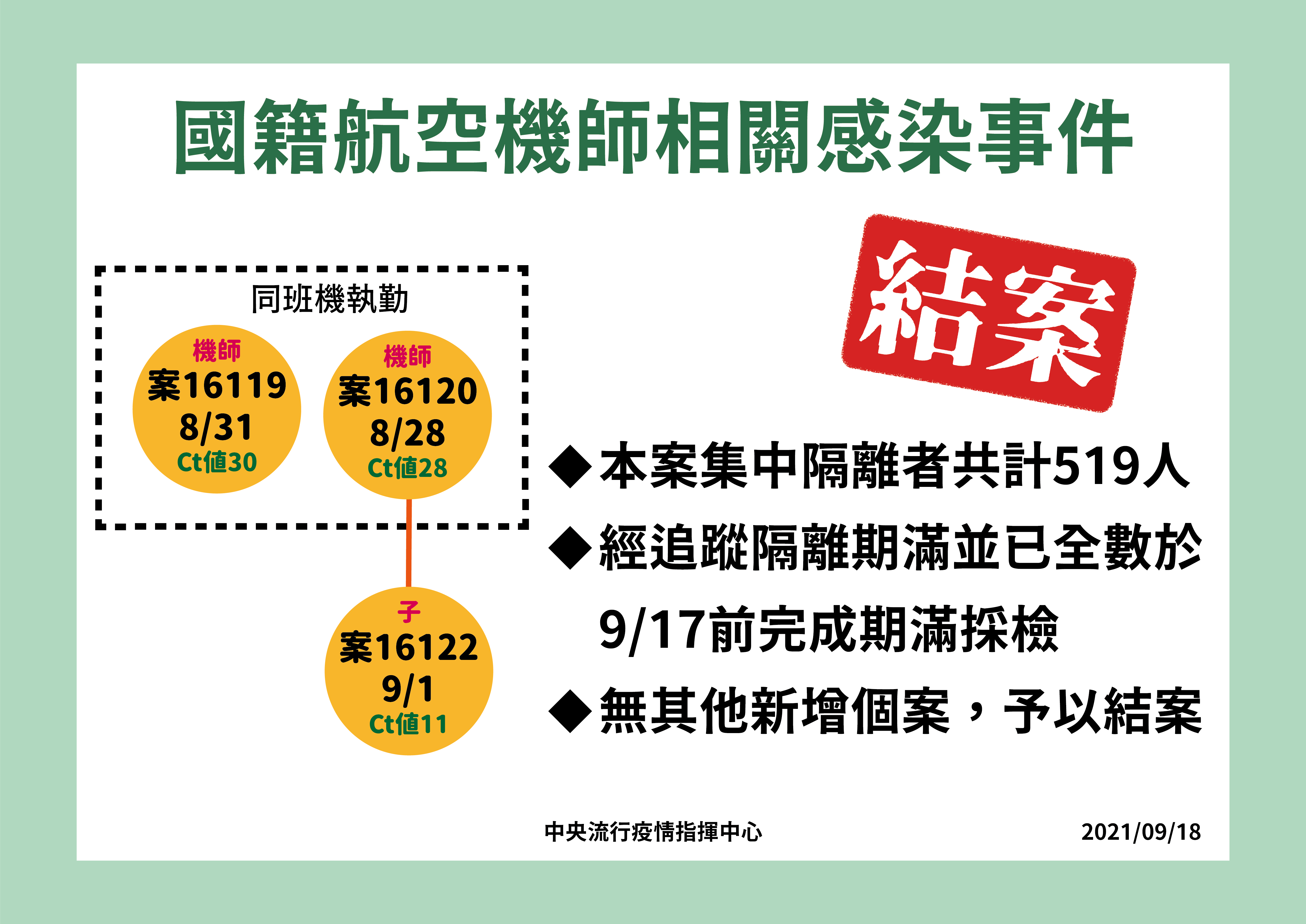 指揮中心說明,今日新增6例境外移入個案,為4例男性、2例女性,年齡介於20多歲至50多歲,分別自印尼(案16234、案16235、案16236)、孟加拉(案16237)及菲律賓(案16238、案16239)入境,入境日介於9月4日至9月16日,皆持有搭機前3日內檢驗陰性報告。