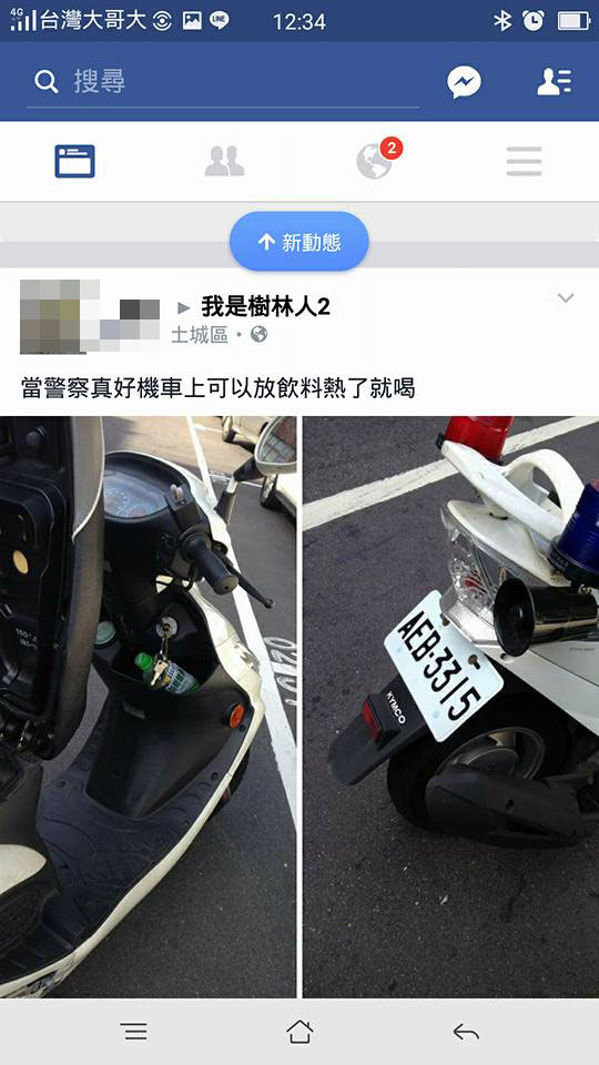 警察真難當!有人在「我是樹林人2」社團上PO照表示「當警察真好,機車上可以放飲料」,這PO文被轉進「爆廢公社」後,引發網友們撻伐,許多人大罵「警察不是人嗎?這也要找碴!」