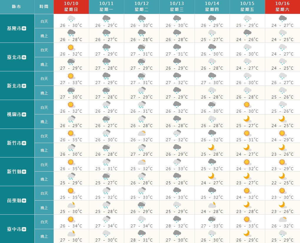 今(10)天是國慶日,上半天的天氣穩定,但到了下半天受到東北風影響,北部地區會有局部短暫陣雨。另外,「台灣颱風論壇|天氣特急」表示,颱風「圓規」雖然不會直撲,但後續的影響反而會更大,因為颱風最強的部份,將會侵襲台灣。