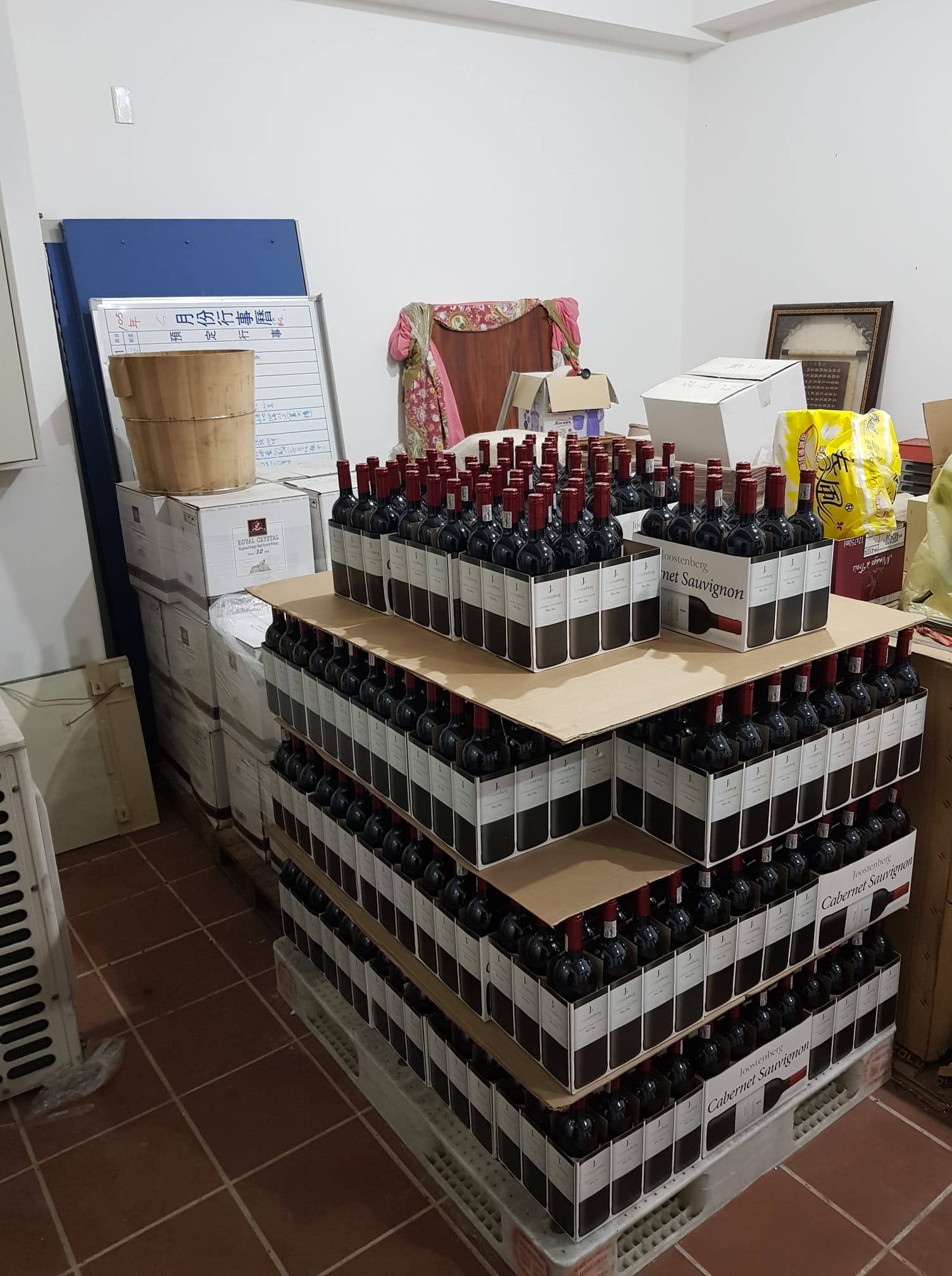 ▼男網友將紅酒放置家中倉庫。(圖/翻攝自臉書 Costco好市多 商品經驗老實說)