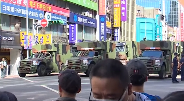 民國110年國慶,軍方派出各式軍車上百輛,在進場前從衡陽路,一路排隊排到忠孝西路,沿路吸引民眾目光。重慶南路充滿軍事氣息,路過的民眾紛紛拿起手機拍照留念,因為不知道哪時候才有機會,可以再次目睹到這麼多軍備。