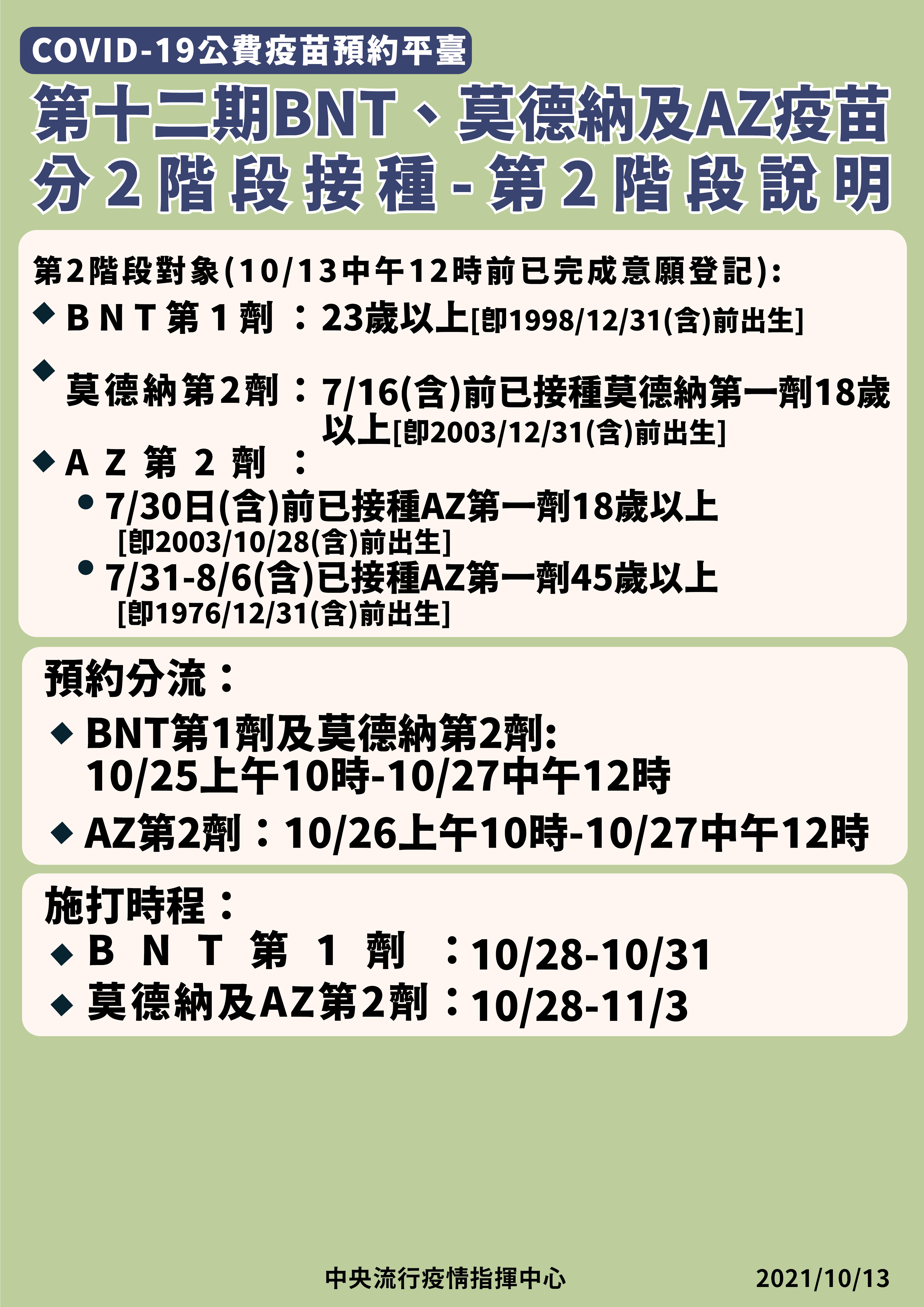 ▼指揮中心公布第十二期疫苗接種分兩階段。(圖/指揮中心提供)