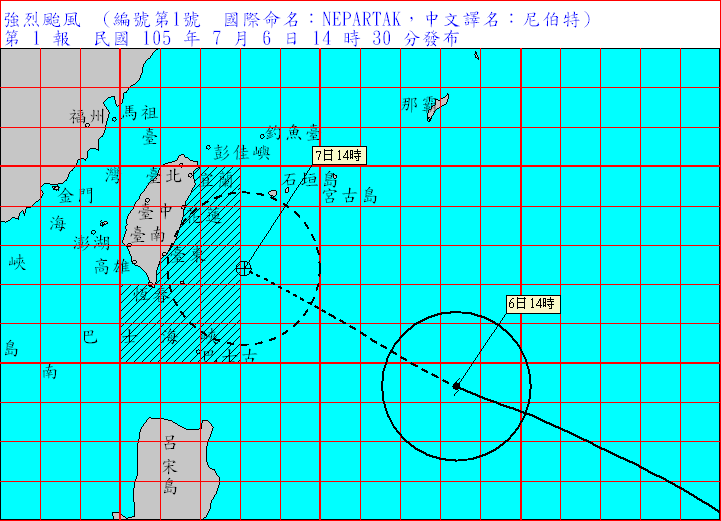 氣象局表示,目前尼伯特以每小時32轉22公里速度,向西北西前進,預估明天下午暴風圈將會接觸台灣陸地,東南及東北部海面要全面警戒。而尼伯特是今年的第一號颱風,沒想到就以「強颱」之姿直衝台灣而來,是58年來首例。