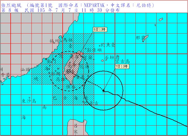 ▲尼伯特颱風路徑圖,雖然會經過中央山脈,但還是請台灣全國民眾嚴加防範。(圖/中央氣象局)
