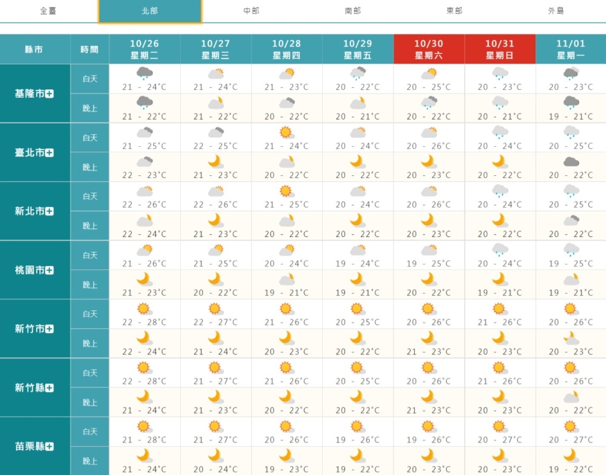 ▼北部一周天氣概況。(圖/翻攝自中央氣象局)