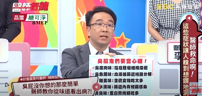 ▼肝膽腸胃科醫師錢政弘指出,可以從屁味判斷身體的狀況。(圖/翻攝自《醫師好辣》Youtube)