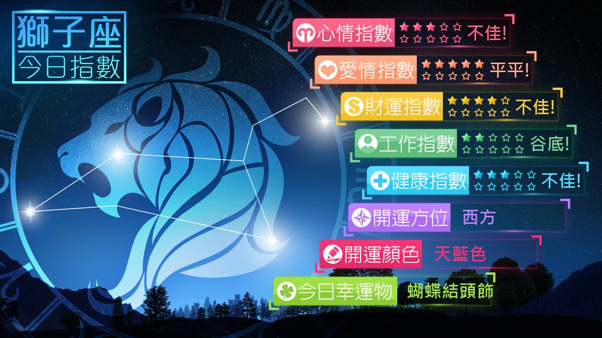財運:留意身邊有財運不錯的親友,可望給你免費招待,還可以沾沾財氣。
