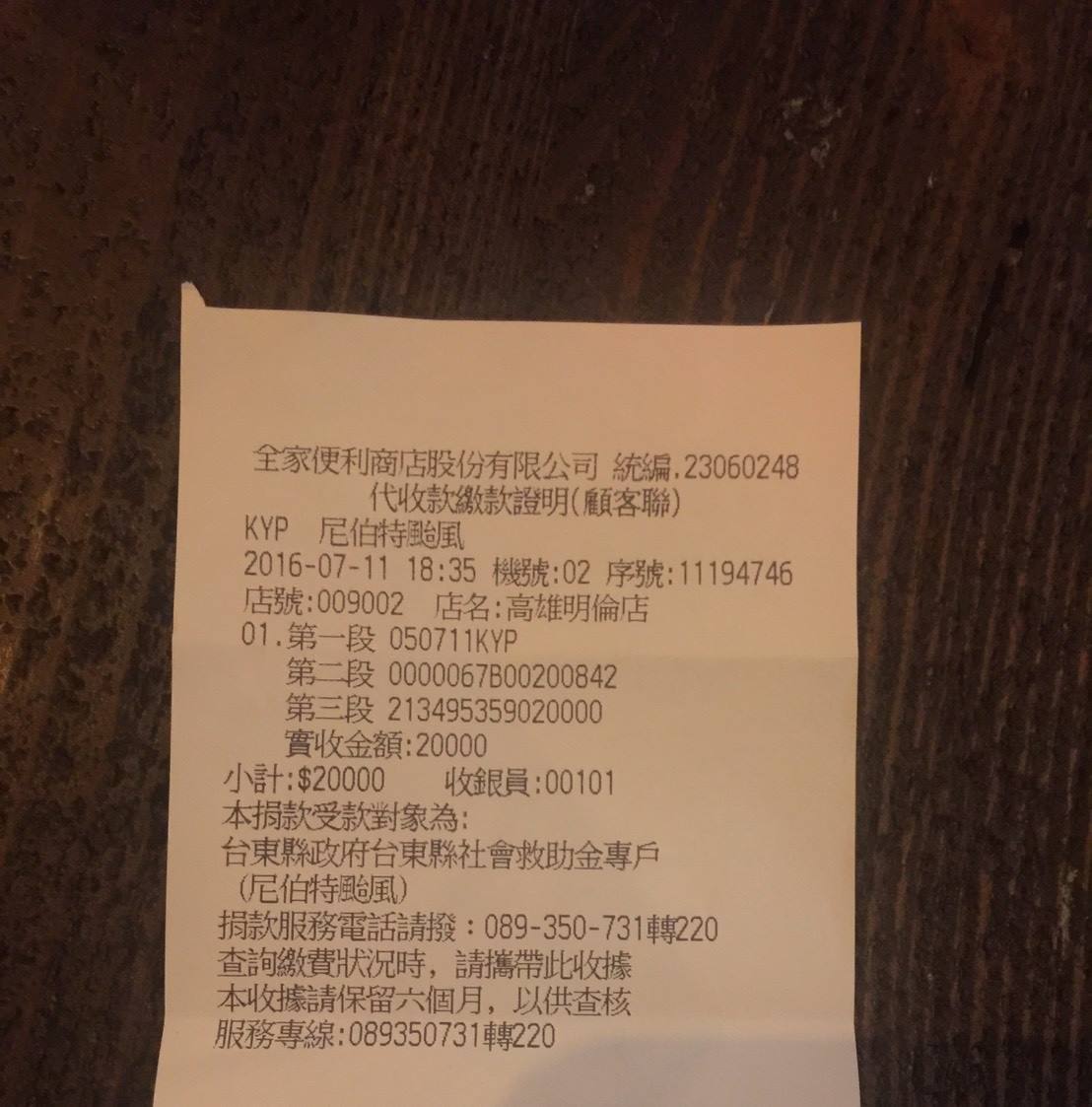 災情,「恐龍哥」12日凌晨也在臉書上貼出捐款收據,「市長可以捐一個月所得,恐龍哥也可以(雖然沒有很多)」,還順便酸了一下表示,「那些吃飽沒事幹沒刷牙的人類,要嘴臭本龍,一樣先去捐款再來嘴」,最後他還呼籲大家一起捐款救台東。
