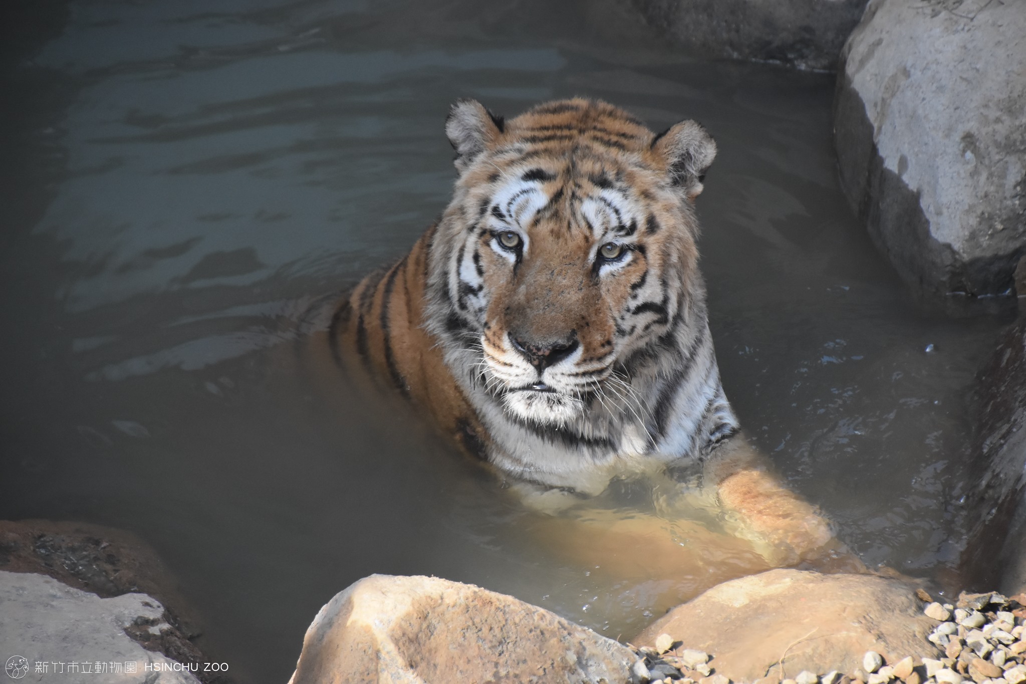 ▼孟加拉虎在池塘裡。(圖/翻攝自新竹市立動物園臉書)