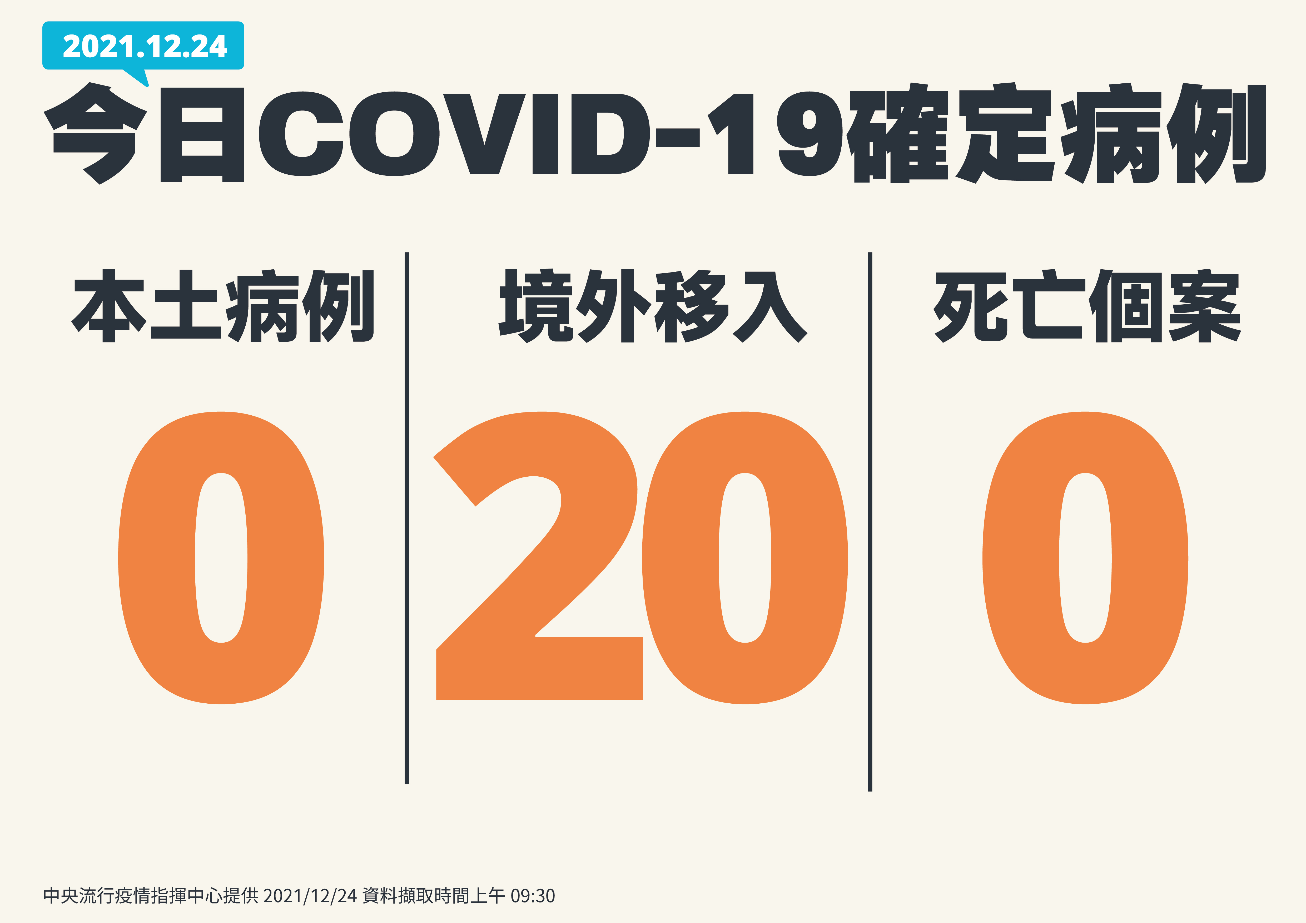 中央流行疫情指揮中心今(24)日公布國內新增20例COVID-19移入確定病例;另確診個案中無新增死亡。