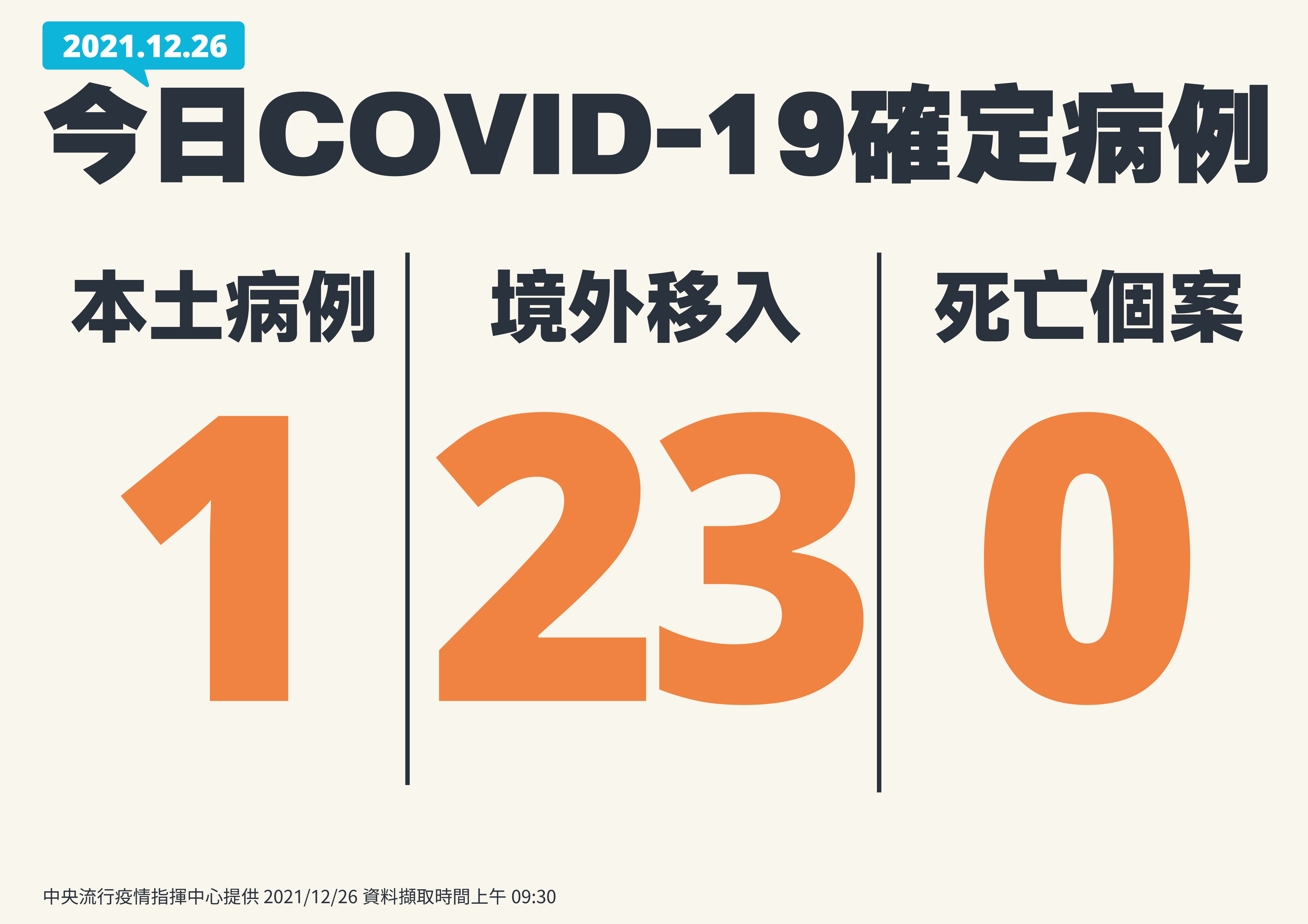 中央流行疫情指揮中心今(26)日公布國內新增24例COVID-19確定病例,分別為1例本土及23例境外移入;另確診個案中無新增死亡。