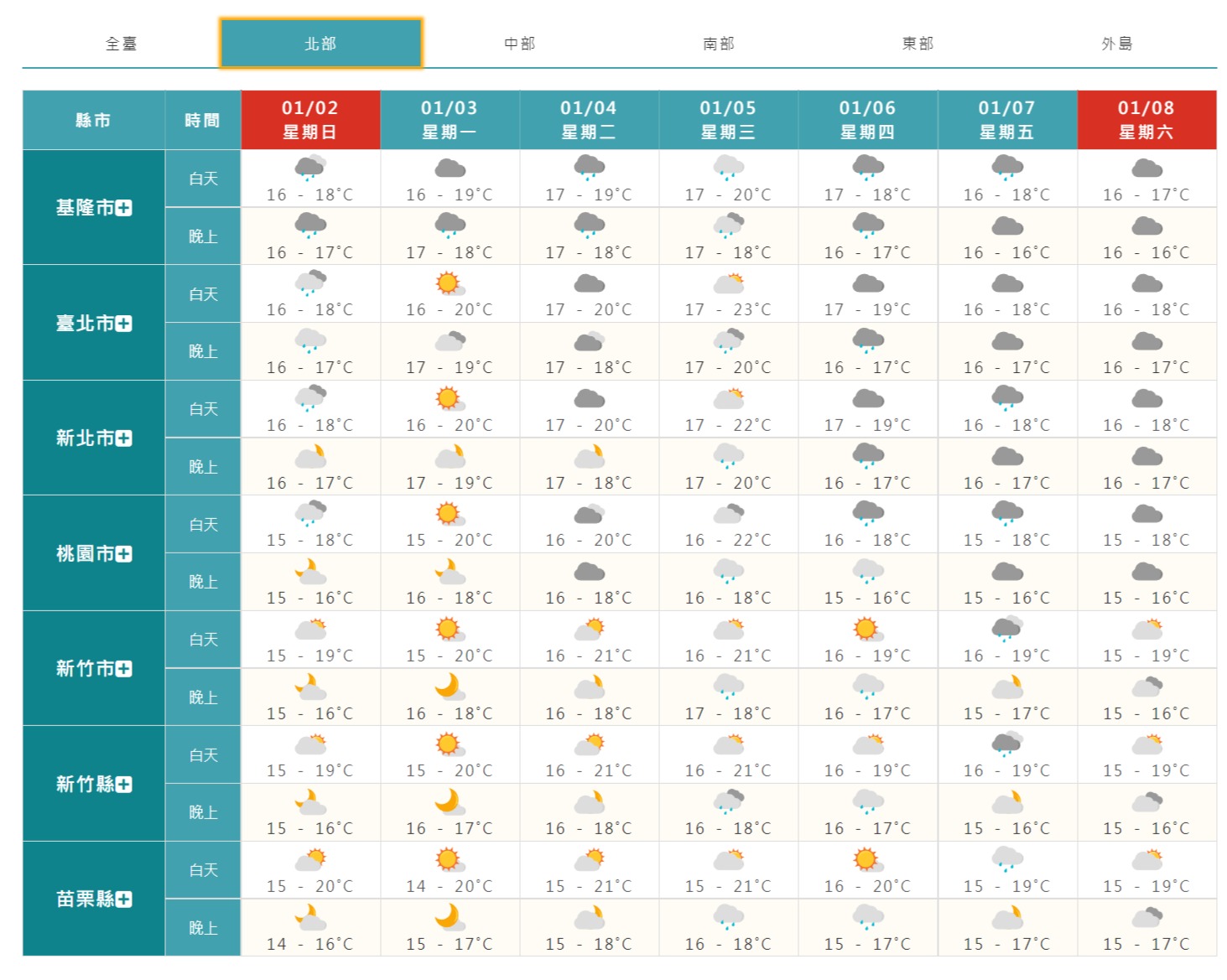 ▼北部1周天氣概況。(圖/翻攝自中央氣象局)