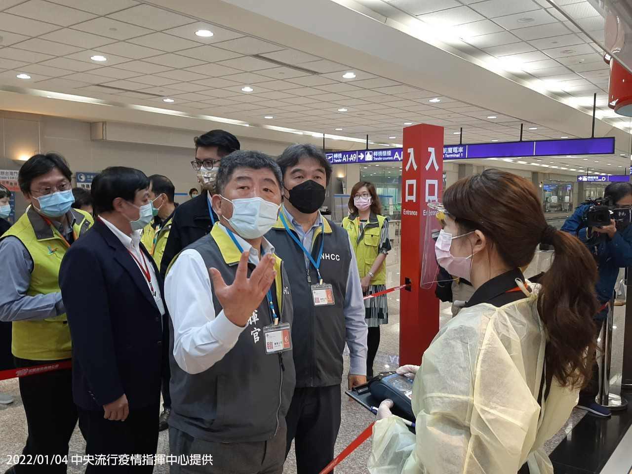此外,為因應桃園機場群聚感染案件,陳時中指揮官於今日下午協同醫療應變組王必勝副組長、桃園市政府衛生局王文彥局長、衛生福利部疾病管制署北區管制中心及機場公司航運中心工作人員,實地進行入境旅客動線勘查,評估釐清風險,檢視第一線人員防護裝備及消毒情形,並啟動3點防疫作為。一、 成立前進指揮所,由醫療應變組王必勝副組長擔任指揮官,統籌指揮相關防疫工作,進行跨單位溝通協調,並評估各單位現場作業風險,提出相關改善計畫。二、 針對高風險旅客(14天內有症狀)之入境動線,重新釐清評估風險,避免與其他民眾、工作人員接觸,降低傳播可能性。三、 配合桃園市政府衛生局採檢規劃「擴大、快速」戰略概念,擴大評估可能有在個案活動地(如清潔的廁所)活動之其他人員,快速進行相關篩檢。