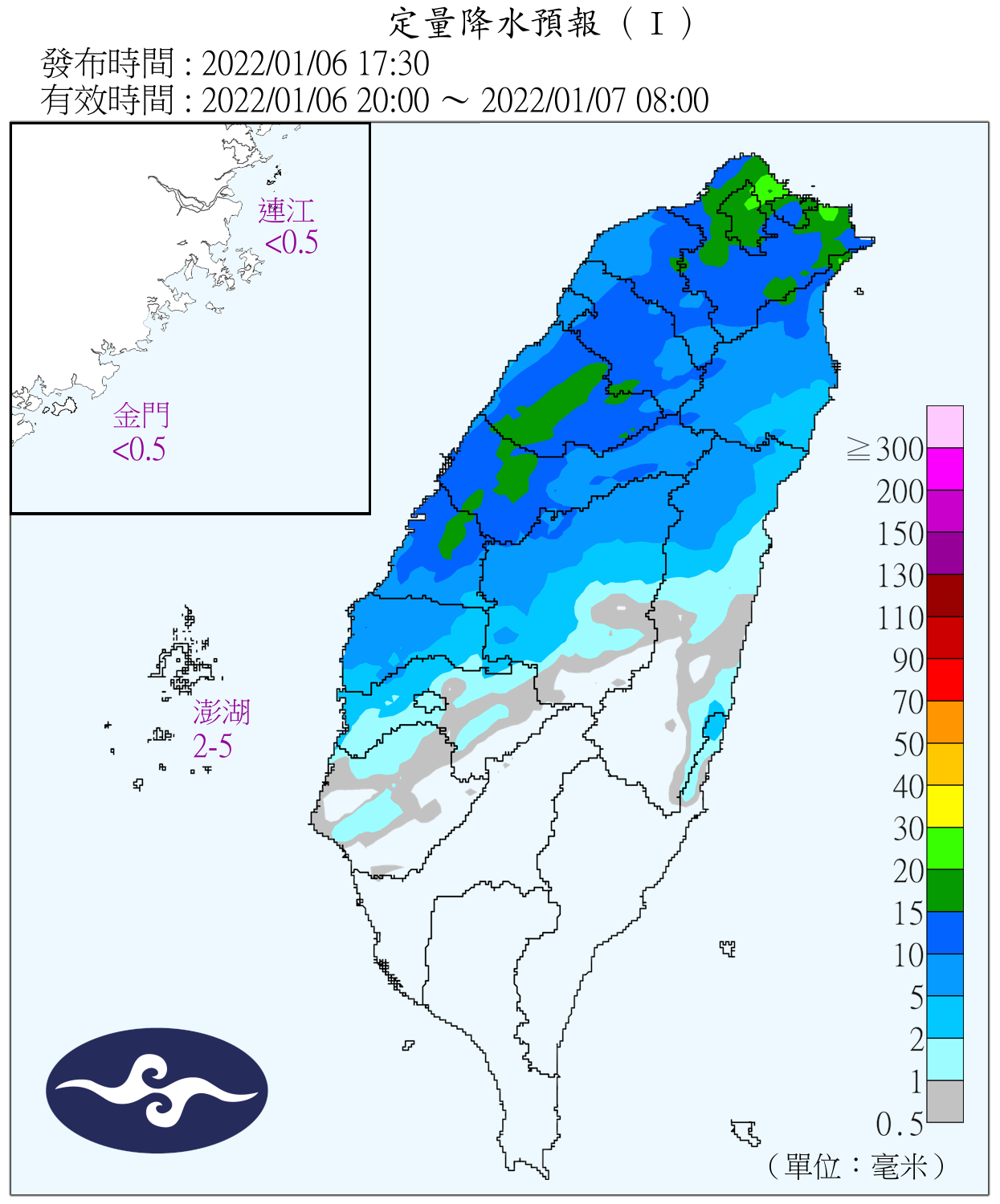 ▼今晚迎風面地區水氣偏多。(圖/中央氣象局)