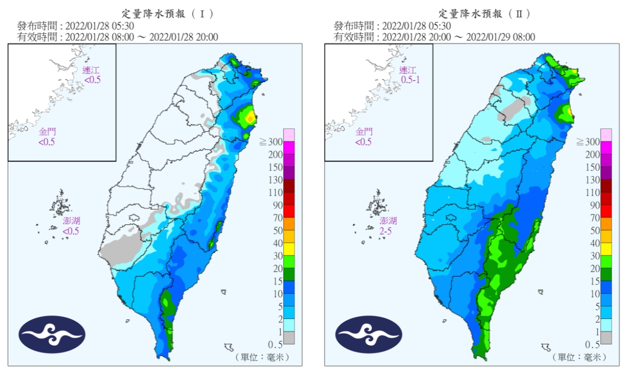 至於新年連假天氣狀況如何?彭啟明在臉書指出,連假首日(1/29)受到南方雲系及鋒面通過影響全台有雨,南部、南花蓮至恆春半島,可能有雷雨發生,且晚間受大陸冷氣團影響,各地氣溫下滑,低溫會來到15-17度;小年夜北部、東半部、中南部山區仍有短暫陣雨,南部天氣漸趨穩定,最冷的時間點落在除夕清晨,市區低溫12-14度,北部、西半部近山、空曠區域低溫可達10-12度,不過除夕也是那段時間天氣最穩定的一天,除了基隆北海岸、東半部仍有局部短暫雨,其餘大致上是多雲到晴的好天氣,但早晚較冷,隔日清晨仍有局部11-13度低溫發生的可能。