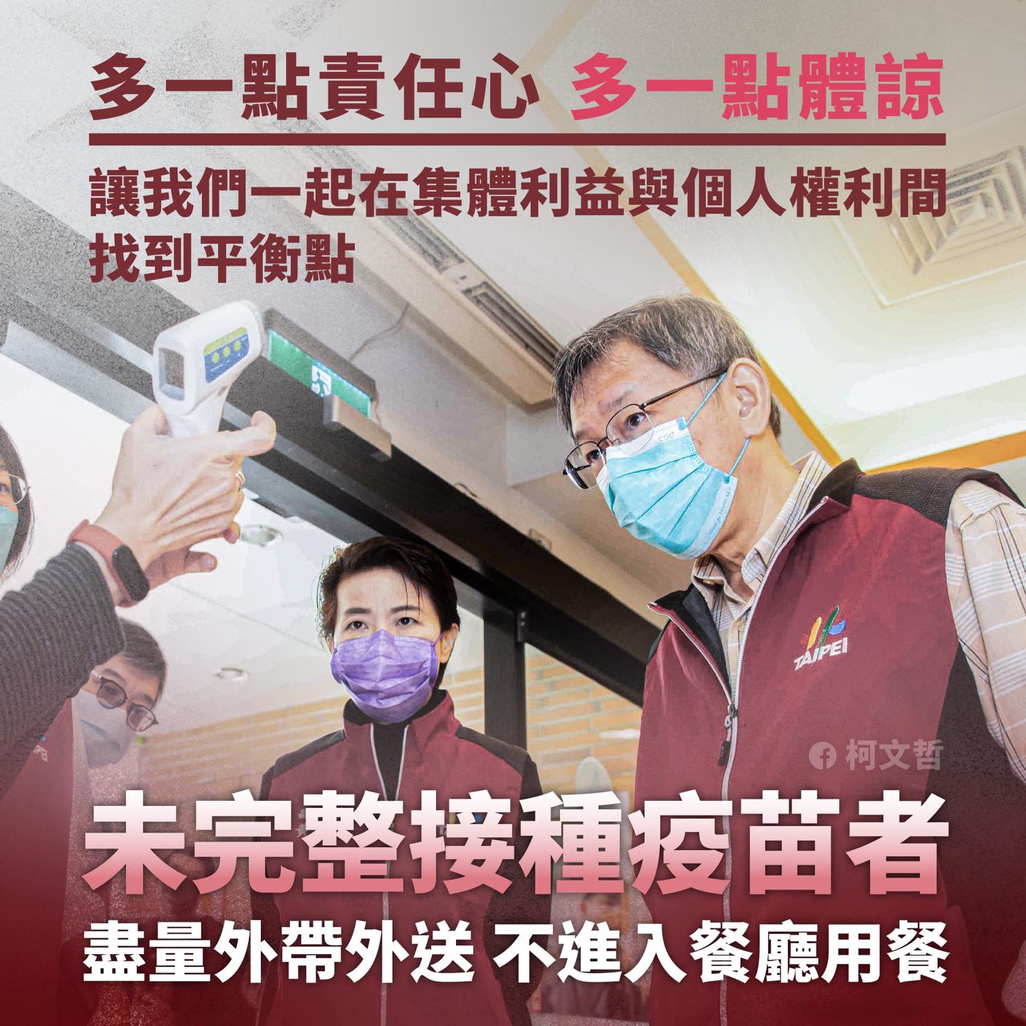 ▼北市呼籲大家沒打疫苗盡量外帶。(圖/翻攝自柯文哲臉書)