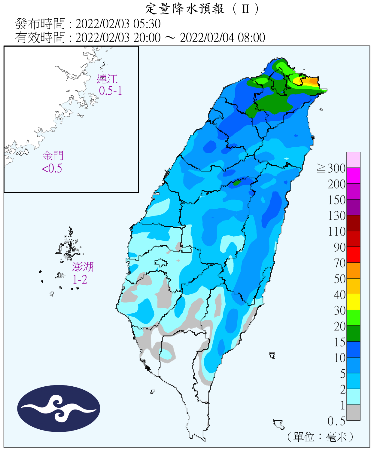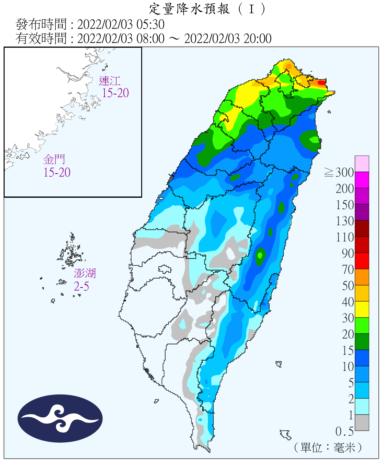 今(3)日由於鋒面通過,全台都有雨,北部及東北部地區有雨,基隆北海岸並有局部大雨發生的機率,中部、東部及東南部地區有局部短暫雨,南部地區亦有零星短暫雨,氣象局也對基隆市、新北市發布大雨特報。此外,而後將有強冷空氣報到,因此也要注意明、後天的降溫。