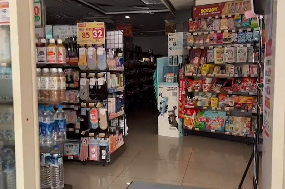 ▼台北晴光商圈旁邊的美妝店停電,店內黑漆漆一片。(圖/東森新聞)