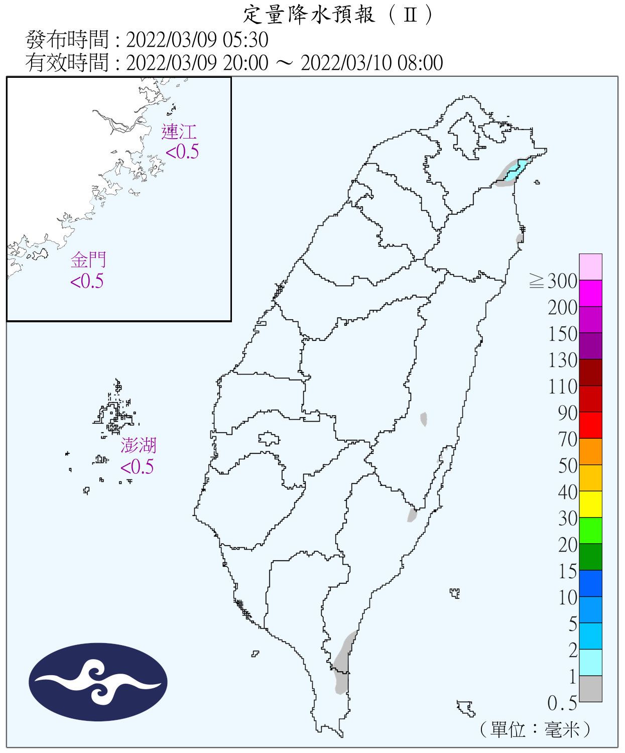 氣象局表示,今、明兩天臺灣各地及澎湖、金門、馬祖為晴到多雲的天氣,僅明日東半部地區有零星短暫雨;而今日基隆北海岸、大臺北地區及恆春半島易有較強陣風,明晚起西半部地區易有局部霧或低雲影響能見度,請注意。