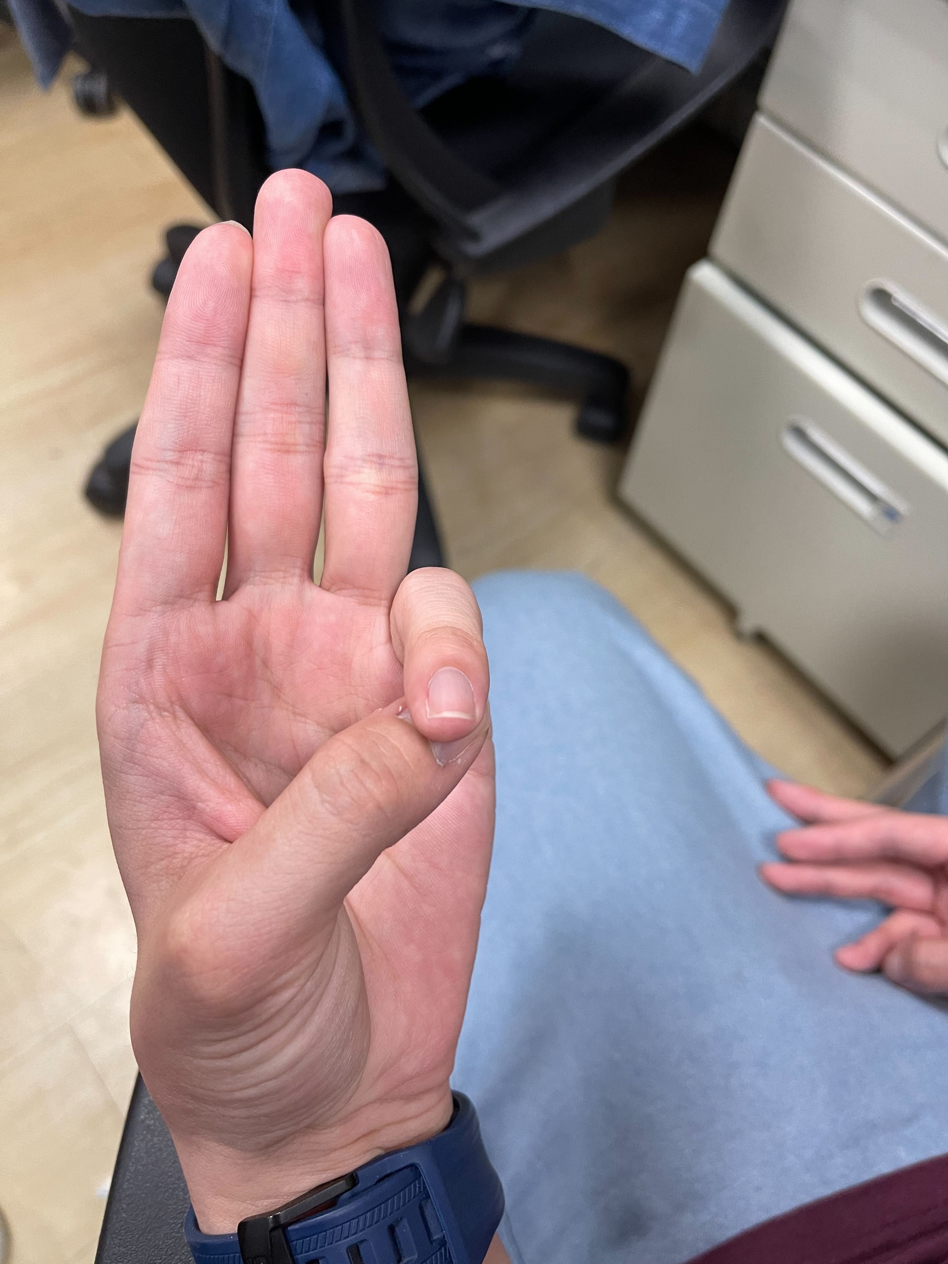 近日有女大生在Dcard以標題「朋友們都做不出來的手勢」發文,並在文中詢問網友「大家有試過把小拇指壓在大拇指上,並且比出一個敬禮的姿勢嗎?本來我以為大家都可以,殊不知在問過朋友之後發現好像會的人不多」,此外,原PO還開玩笑的說,朋友中會這個手勢的人,大部分都是有學過鋼琴的居多「果然有後天的訓練差很多」。
