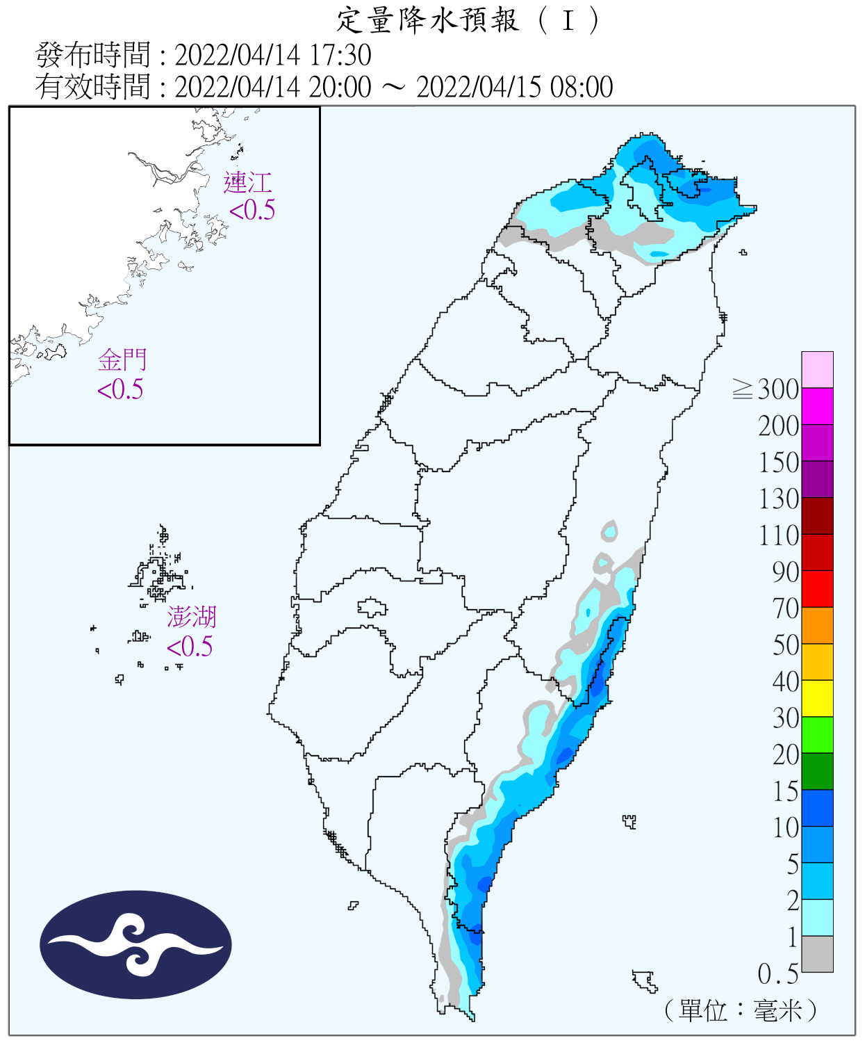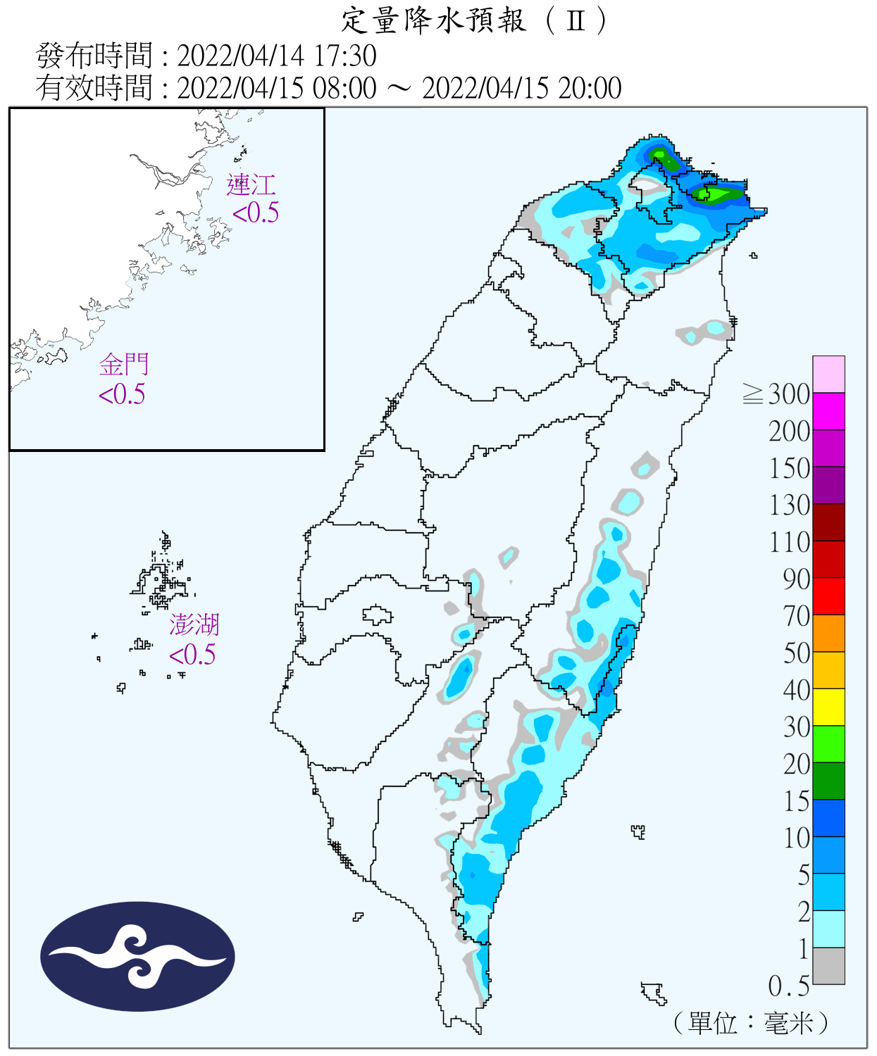 趙竑指出,16、17日水氣較少,降雨主要在基隆北海岸、東半部有短暫雨,午後中南部山區則是局部短暫雨;18、19日水氣稍增,降雨範圍稍微擴大至北部、東半部有短暫雨;20日東北季風減弱,20、21日水氣較少,僅迎風面的東半部地區有短暫雨,另外山區可能有短暫陣雨。