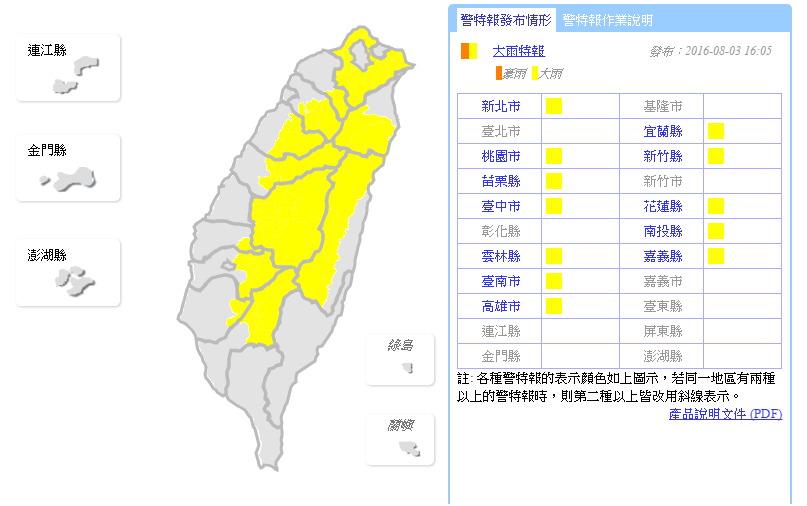 對流雲系旺盛,易有局部短暫雷陣雨。中央氣象局下午就針新北市、桃園市、新竹縣、苗栗縣、台中市、南投縣、雲林縣、嘉義縣、台南市、高雄市、宜蘭縣、花蓮縣以上12縣市發布大雨特報,請民眾務必多加注意。