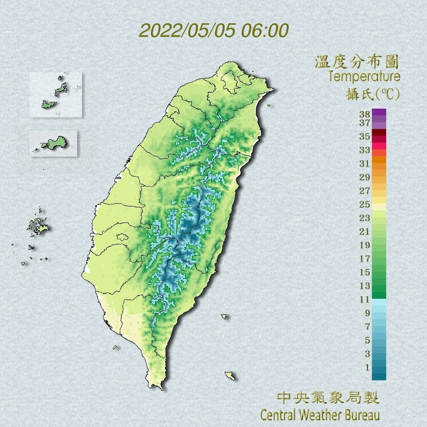 氣象局透露,氣溫方面,夜晚清晨各地低溫約21度至23度,預估白天高溫比昨天再回升一些,預測北部及宜、花為25度至27度,中南部及臺東為28度至30度,體感溫暖微熱。