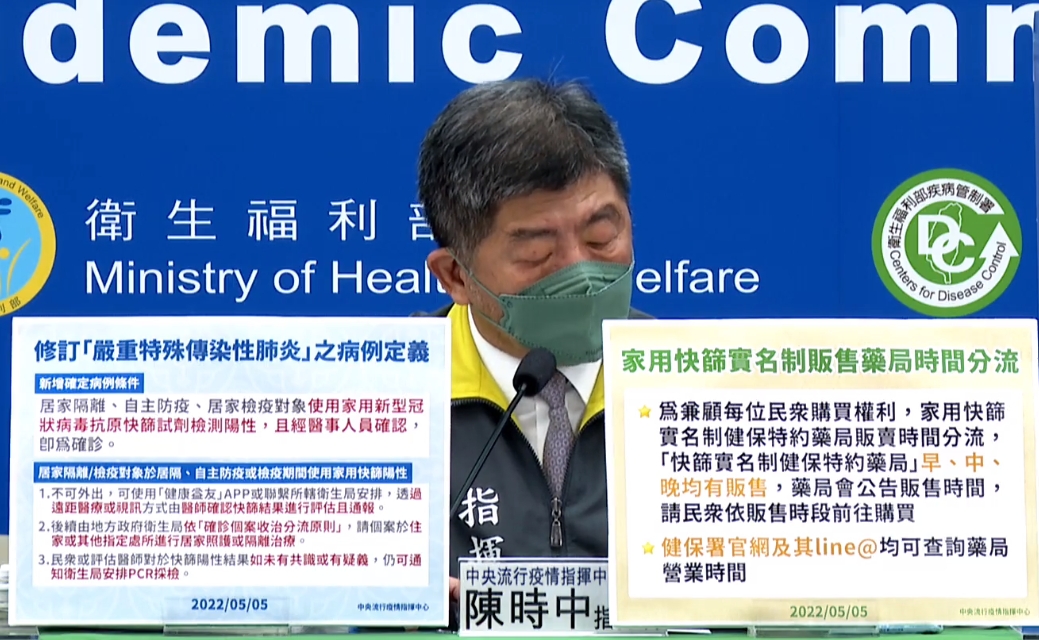 陳時中在記者會上指出,為減少民眾外出確認是否確診的風險,才會決定修訂「快篩陽性」的定義,不過民眾或衛生局若對結果有疑慮,仍可通知衛生局安排PCR採檢。凡是居家隔離、自主防疫、居家檢疫對象,使用家用快篩試劑呈現陽性,只要經過醫事人員遠距視訊確認,就不需要出門做PCR,可直接判定為確診個案。